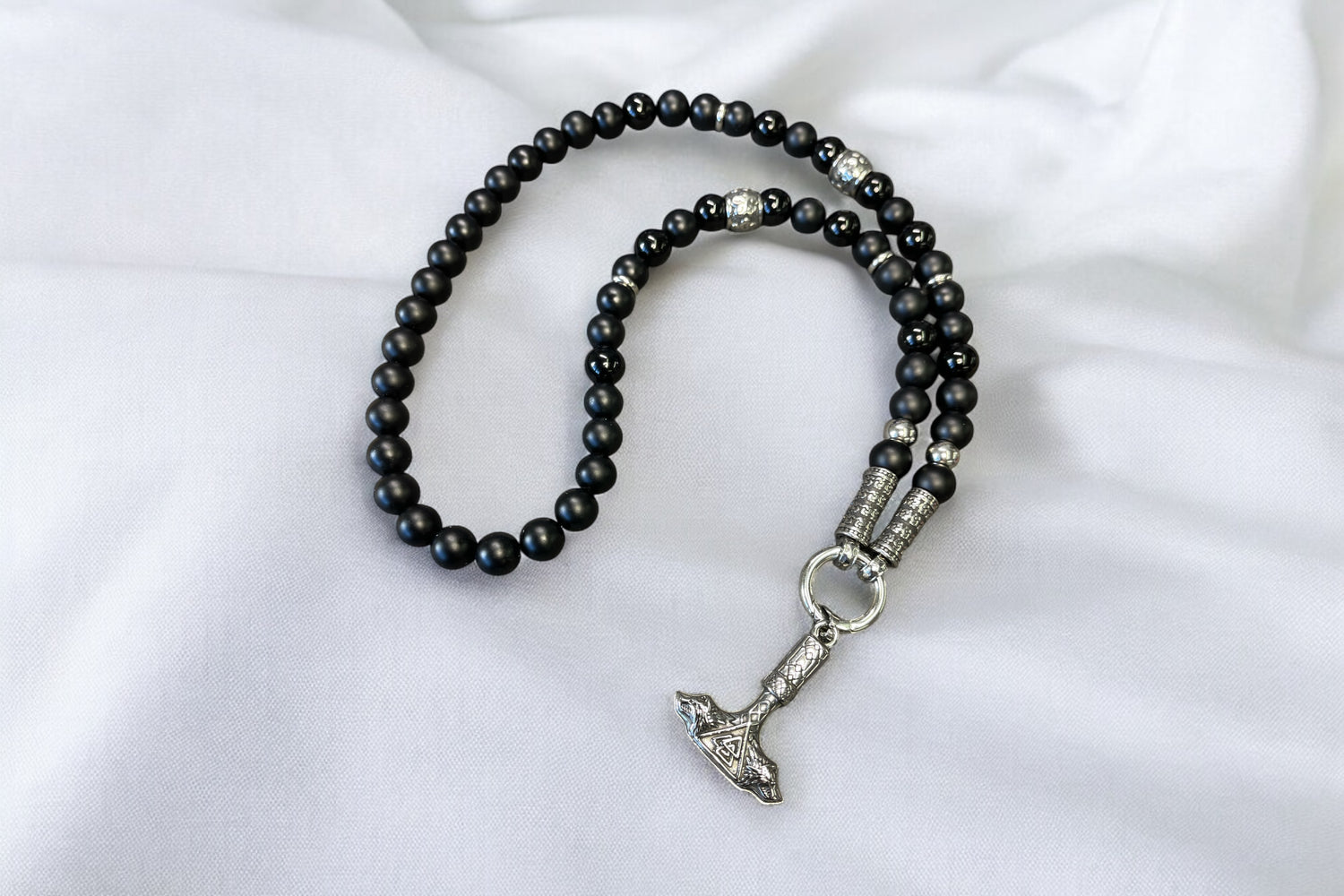 Zusammen entsteht eine markante Bikerhalskette, die matte Dunkelheit mit metallischer Klarheit verbindet – stark, minimalistisch und absolut alltagstauglich.