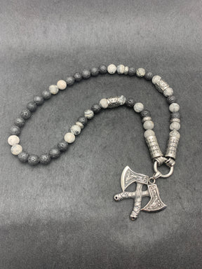 Die Halskette ist mit viel Energie und Loyalität gebunden. Der Jaspis hat eine harmonische Wirkung. Aufregend und mit den Edelstahlzwischenstücken genau das Richtige für Personen mit einem Flair für Vikinger oder das Keltische.