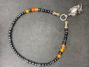 Die Halskette besteht aus Edelstahl, Feuer Drachen oranger Achat, Onyx glänzend,